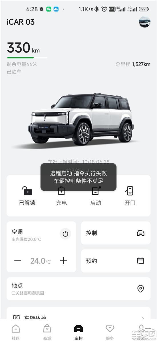 投诉车款:2024款iCAR 03 501km 两驱长续航版