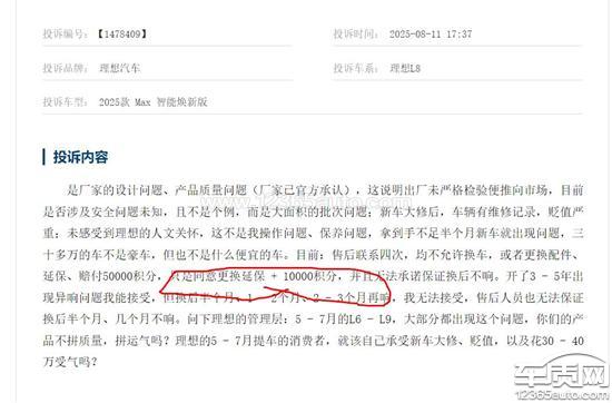 理想L8低速行驶踩刹车时有刺耳异响,该问题于7月中上旬出现,起初异响声音较小,如今越来越大。理想客服一直声称延保政策出来后都无积分补偿,但从投诉车友反馈以及其他异响维权人反映的情况来看,还是有积分补偿的,这种看人下菜的做法属实令人恶心。