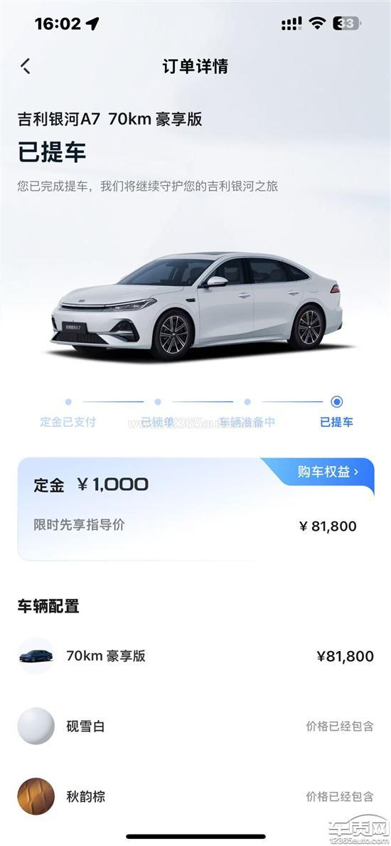 吉利银河A7厂家拖延退还购车订金 要求处理