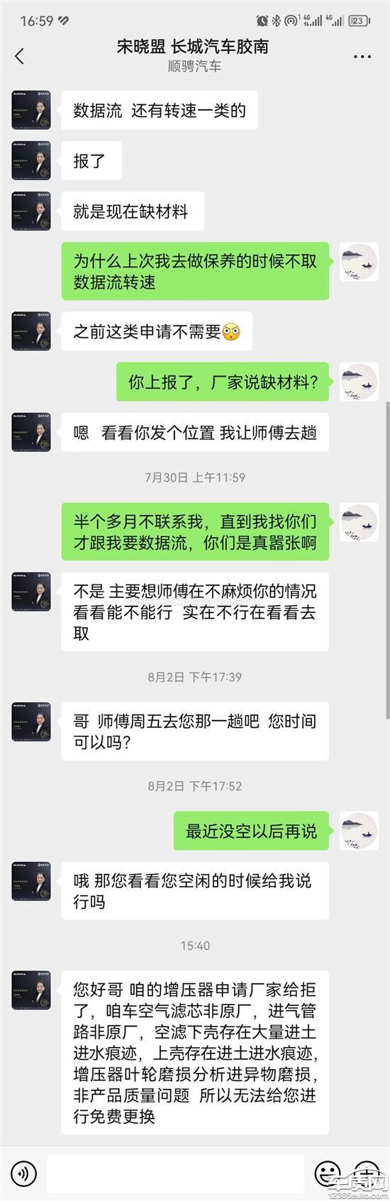 一年前的高速上出现的油门踩到底不提速,回青岛4S店售后(当时没亮故障码)告诉我高速上的油品不好,就没修。过了一段时间又出现这种故障,去青岛4S店售后(没亮故障码)告诉我偶发性故障没法检测,出现故障后需采集数据流检测,又没修。在这期间断断续续的出现过好几次这种故障,第二天开车故障就消失了(由于我的车出现过涡轮进气管鼓开的情况网上很多车友都出现过,我也索赔了,但我还是不放心就换了加强加厚的涡轮进气管),直到2023年7月14日仪表盘出现了发动机故障码,当天就去了青岛4S店售后,检测出:涡轮增压器增压压力显示过低,当天保养完后给我消除了发动机故障码。经历了一年啊,我要求索赔涡轮增压器,15天后我咨询的青岛4S店售后人员,才告诉我缺材料(本人投诉青岛4S店欺客)。2023年8月11日我去青岛4S店采集数据流,路试的时候又跳出了发动机故障码,检测出的故障跟上一次一样:涡轮增压器增压压力显示过低。故障码还在,当天就让我走了,回家等厂家的消息。本人要求厂家立即给我索赔涡轮增压器,本人开了一年车偶发性无动力,精神损失费就算了,但本人要求厂家延长我的整车质保至少延长三年。