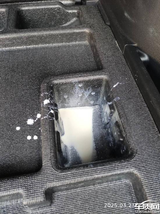 今天2025年3月23日,看了一下后备厢下面的储物盒,发现原车送的补胎液自己漏了,这半年后备厢没装过重物,补胎液瓶子没拆过没碰过,下面隔着一层薄薄泡沫就是电控高压直流元部件。还好发现的早,不然后果不敢想象。