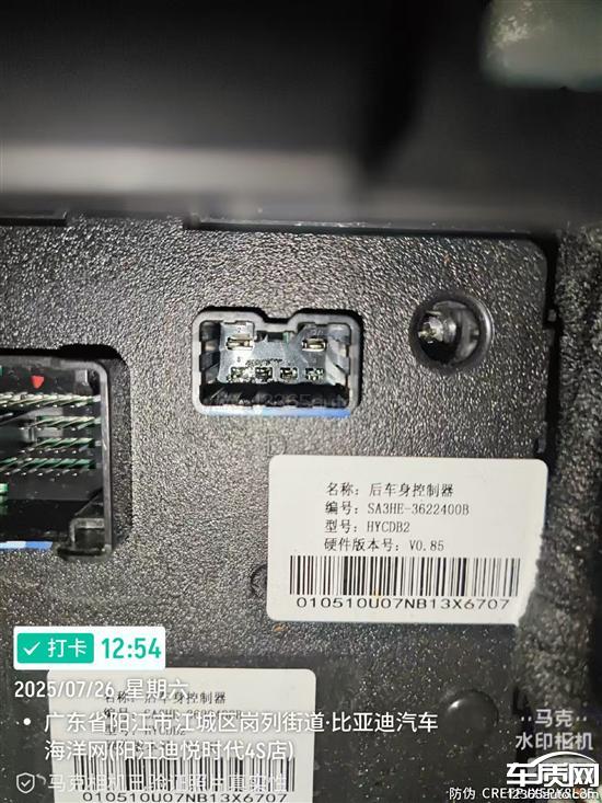 比亚迪宋PLUS新能源车身控制器放置位置不合理