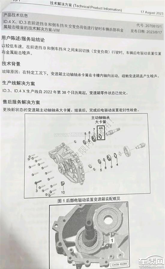 上汽大众ID.4X电机减速器故障有异响