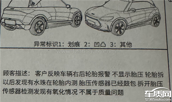 smart精灵1胎压传感器质量问题,正常用车场景胎压传感器鼓包报错。smart售后给定性为补胎喷水喷多了导致。提出异议后smart要求拆开传感器检查是否有进水,拆开后传感器内并无水渍。smart定性故障不是质量问题且给两版结论。